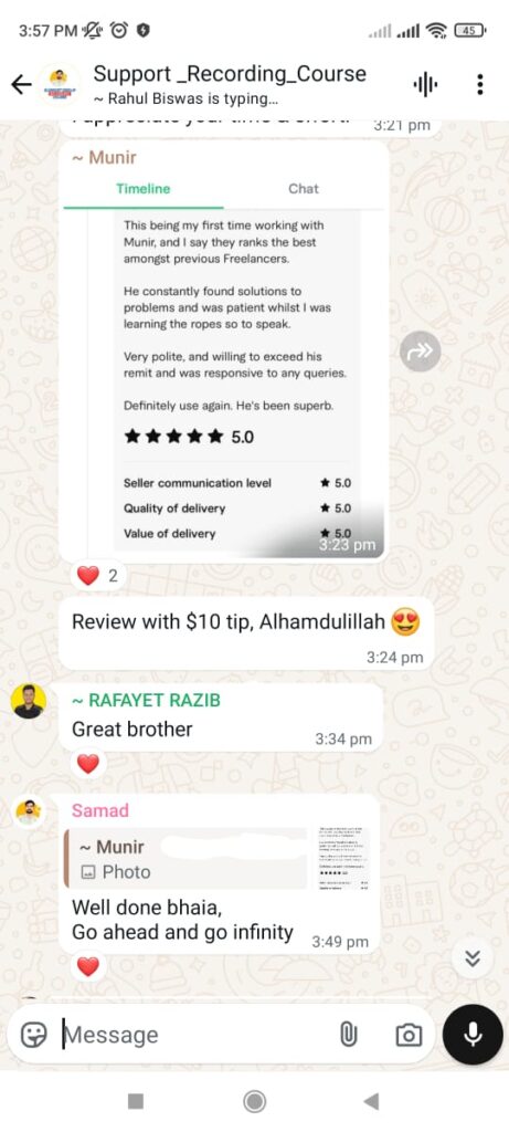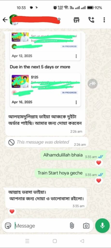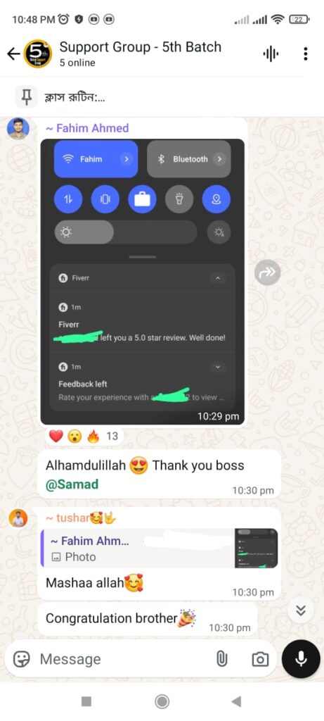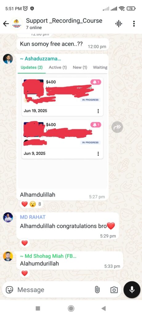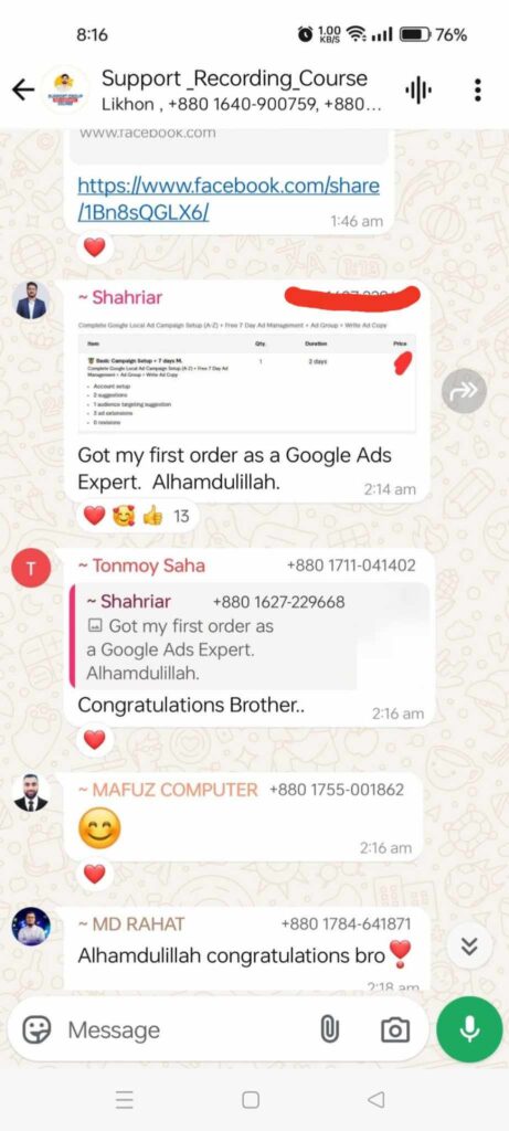 নিচে আমার কিছু ছাত্র-ছাত্রীদের রিভিউ এবং সাফল্যের গল্প শেয়ার করা হয়েছে। আশা করছি, এগুলো আপনাকে অনুপ্রাণিত করবে এবং সঠিক সিদ্ধান্ত নিতে সাহায্য করবে। আমি বিশ্বাস করি, তাদের এই সফলতার গল্প আপনাকেও আপনার লক্ষ্যে পৌঁছানোর জন্য সাহস এবং দিকনির্দেশনা দেবে।